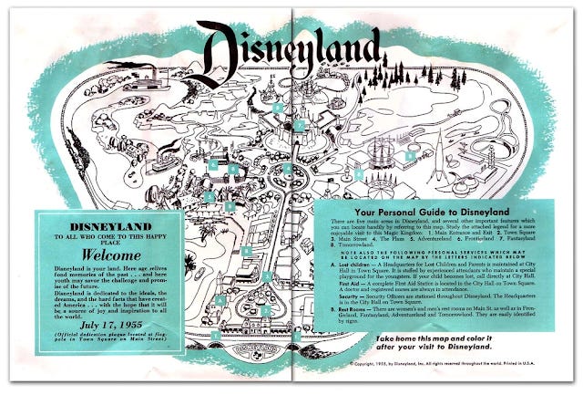 Disney liked the design so much that Ward Kimball said Walt talked of “little else” on the return train trip to California. Disneyland later took shape as four village-style lands, Adventureland, Frontierland, Tomorrowland, and Fantasyland, all linked together by an old-time narrow gauge train that author Tom Zoellner points out “look[ed] eerily similar to the Chicago Railroad Fair.”